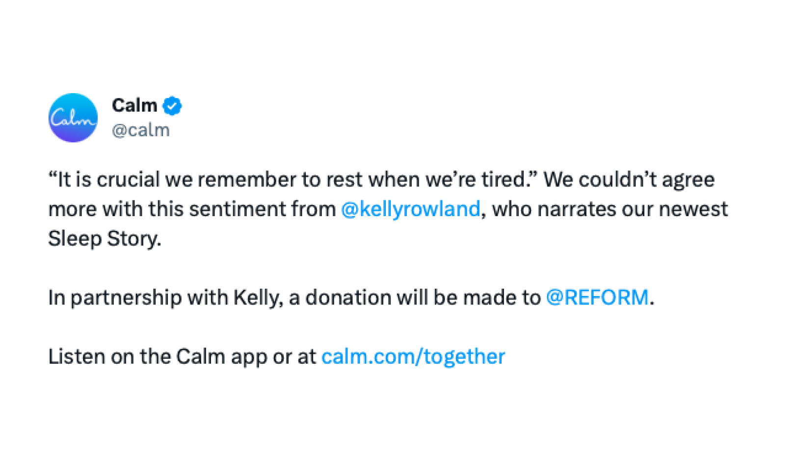 - As Part of Partnership, Secured a Generous Donation from Calm to REFORM Alliance on Behalf of Kelly Rowland